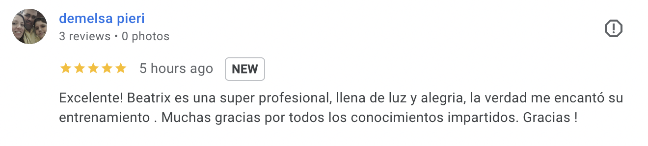 Excelente! Beatriz es una super profesional, llena de luz y alegria, la verdad me encantó su entrenamiento . Muchas gracias por todos los conocimientos impartidos. Gracias !